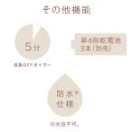 - ご注文内容についてお客様への確認が必要な場合、出荷にお時間をいただきます。 商品数量とご購入ラッピング枚数が一致しない場合、商品の包装はせず、ラッピングバッグを同梱してお送りいたします。 ラッピングを商品とご一緒に注文されていない場合、ラッピングをせずに商品を出荷いたします。詳しくはこちらをご覧ください。 品名 ルルド ハンディマッサージャー ほぐスティック 品番 AX-HPL113PU / ペールパープル AX-HPL113GR / ウォームグレー 医療機器認証番号 304AABZX00063000 使用目的又は効果 あんま、マッサージの代用。一般家庭で使用すること。 (疲労回復、血行をよくする、筋肉の疲れをとる、筋肉のこりをほぐす、神経痛・筋肉痛の痛みの緩解) 仕様 ■素材:本体・ポイントヘッド:ABS樹脂 電池ケース:ABS樹脂アタッチメント:シリコンゴム+ABS樹脂 ■使用電池:単4形電池×3本(別売) ■連続使用時間:約90分(一般的なアルカリ電池使用) ■防水等級:IPX5 ■振動数:弱モード:約4600回 / 分中モード:約5700回 / 分強モード:約7000回 / 分自動モード:最大約7000回 / 分 ■自動OFFタイマー:約5分 ■付属品:アタッチメント2種(ポリゴン、トゲトゲ) ■生産国:中国 ■保証期間:1年 サイズ・重量 ■本体サイズ:(約)W45×L45×H190mm / 約80g(電池含まない) ■アタッチメント・ポリゴン:(約)W45×L45×H45mm / 約30g ■アタッチメント・トゲトゲ:(約)W60×L60×H50mm / 約40g 梱包サイズ・重量 ■化粧箱:(約)φ75×H255mm/(約)300g 関連キーワード 20代 30代 40代 50代 60代 70代 大人 男性 女性 彼氏 彼女 お父さん 父親 お母さん 母親 ギフト プチギフト プレゼント お祝い お返し クリスマス バレンタインデー ホワイトデー 父の日 母の日