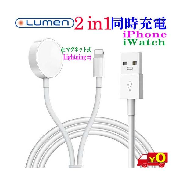 - 【送料無料 ポスト投函】 ●Lightning + Apple Watch 同時充電可能 ●マグネット式ワイヤレス充電+ライトニング充電ケーブル 1m ●対応機種:iWatch iPhone iPad Airpods iPod ◆USB−A ◆5V/2A ◆ケーブル長さ:1m