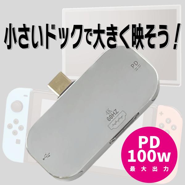 Switch対応 60Hz Type-C to HDMI ミニドッグ コンパクト 軽量 PD100w