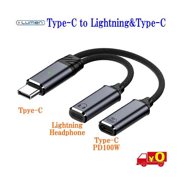 Lumen ルーメン LAD-CMCFLF100 分岐ケーブル Type-C to PD100W充電 & Lightningヘッドホン変換アタプタ【送料無料nポスト投函】Type-C to Lightning+PD100W