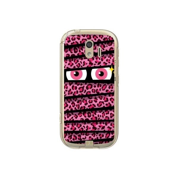 らくらくスマートフォン me ケース F-03K ミイラくん レオパードピンク スマホケース (受注生産)