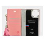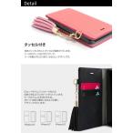 前面フリップにかわいいタッセルが装飾されています。ケースのカラーに合わせたタッセルが動くたびに揺れる女性らしいデザインです。