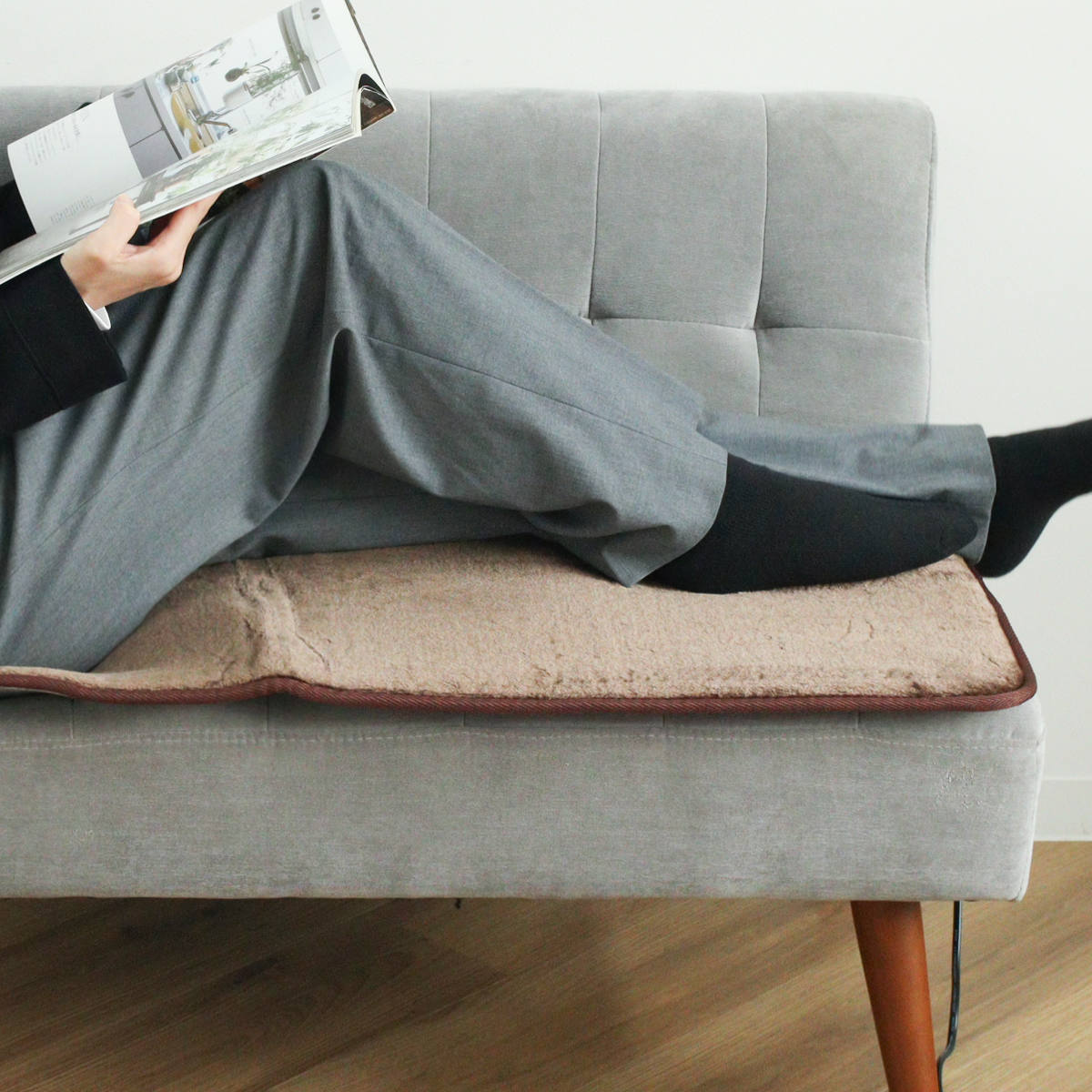 ●イスの上におけば腰の冷えを防ぎ暖かな座席に変わります。