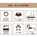 - 商品詳細 ホットカーペット本体になります。 クッション性抜群のボリュームタイプ。 足にも優しく、優れた保温・防音効果。 防音効果に優れているので、子供部屋など音が気になるところに最適です。 コンセントの位置に合わせて電源コードの向きを90ど動かせる「90度コードフリーターン」採用。 サイズ(約) 2畳:175cm×175cm 3畳:195cm×235cm 厚み:1.5cm 重 量(約) 2畳:4kg 3畳:6kg コード長さ(約) 1.5m タイマー 6時間オフタイマー付 暖面切替 全面 右半面 左半面の3面切換 機 能 便利な90度コードフリーターン機能有 ダニ退治機能付 電気コタツと併用可 エアコンとの併用可 消費電力 2畳:500W 3畳:720W 材 質 表面:ポリエステル100% 裏面:ポリエステル100% 原産国 日本ホットカーペット 一覧はこちら▶ 国産ボリュームホットカーペット 2 / 3 畳用 保温性と防音性がアップ 通常タイプと比べ約2倍の厚みで優れた保温性と防音性があります。イスの引きずり音や物の落下音もほとんど聞こえないレベル。また従来品に比べ下層の厚みが3倍でクッション性が抜群です。 安心の国産ホットカーペット 国内一貫生産にこだわった安心品質のホットカーペット。ストーブのように火を使わないのでお部屋の空気が乾燥しません。空気も汚れず換気の必要がないので、小さなお子様にも安心です。 ダニ退治機能付き ダニ退治機能で気になる時にダニ退治。ペットのいるご家庭も安心です。 コンパクトに収納 収納時はコンパクトに折り畳めるので場所を取りません。シーズンオフ前にダニ退治をしてから保管すれば、次シーズンも清潔なままお使いいただけます。 ラグ・こたつと併用可 ホットカーペットの上にお好きなラグを乗せたり、こたつの下に敷いてお使いいただけます。ホットカーペット本体のクッション性が高いのでラグを薄手のものにするとお洗濯がラクです。 暖房面積切替 スライドを調節して暖房面積を切り替えることが可能です。全面使うのはもったいない時に片面のみにすれば電気代節約できます。 6時間オフタイマー 電源を入れてから6時間後に自動的に切れるタイマー付き。つけっぱなしによる電気の無駄遣いや火事の心配がありません。 操作が簡単なコントローラー スライド式のスイッチでどなたでも簡単に操作が可能です。コードはコントローラーの左上から出ています。コードの付け根は90度自在に動かせます。 サイズ一覧 レギュラータイプ 厚手タイプ