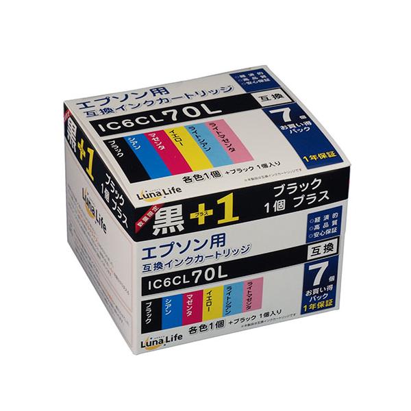 ワールドビジネスサプライ Luna Life エプソン用 互換インクカートリッジ IC6CL70L ブラック1本おまけ付き 7本パック LN