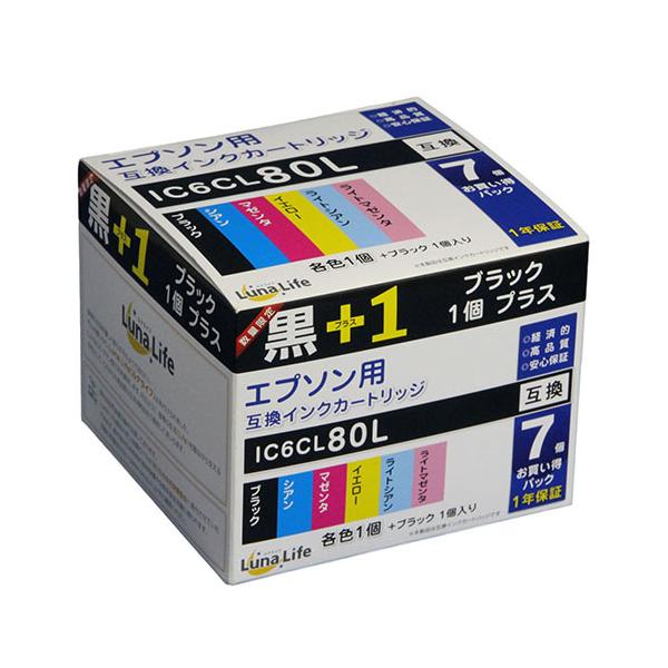 ワールドビジネスサプライ Luna Life エプソン用 互換インクカートリッジ IC6CL80L ブラック1本おまけ付き 7本パック LN