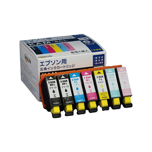 ワールドビジネスサプライ Luna Life エプソン用 互換インクカートリッジ KAM-6CL ブラック1本おまけ付き7本セット LNEPKAM/6PBK+1
