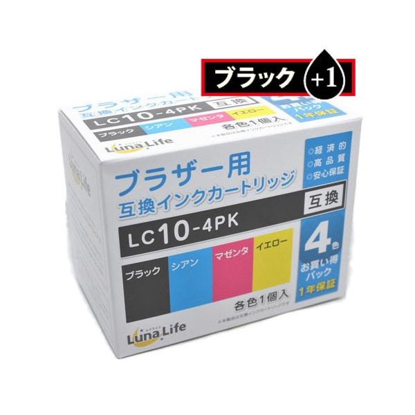 3個セット ワールドビジネスサプライ Luna Life ブラザー用 互換インクカートリッジ LC10-4PK ブラック1本おまけ付き 5本パック LNBR10/4PBK+1X3