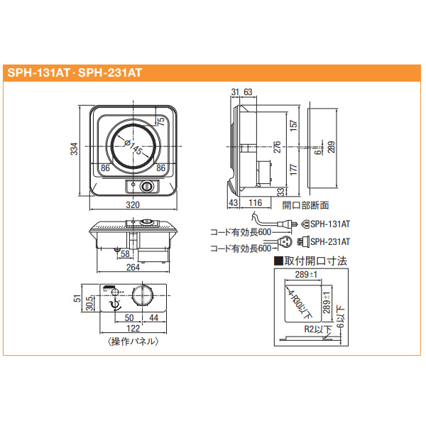 - ■ 三化工業 ■プレートヒーター ビルトイン1口(100Vタイプ)◆ 主な特長 ◆●プレートヒータータイプヒーターが鋳鉄製だから丈夫で熱伝導に大変優れてます。また、保温性抜群で余熱も充分利用出来て、節電&節約になります。優れたローコストなので、一人暮らしのアパートやオフィスのキッチンに最適です。●見やすく使いやすい上面操作タイプ。市場での実績及び信頼性の高いプレートヒーターを採用。コンパクトなのに高火力、そして経済的です。コントロールスイッチを上面に配置したことにより、操作性が向上しました。●ついうっかりも安心、切り忘れ防止機能ヒーター通電後約45分で自動的に通電をOFFにする切り忘れタイマー付き。●ロータリー式つまみ●施工が楽な一体構造◆ 主な仕様 ◆■型名:SPH-131AT■色:シルバー■定格:単相100V(50/60Hz)-1300W■大きさ:幅320×奥行き334×高さ159mm■重さ:約3.0kg■ヒーター:直径:145mm■消費電力:1300W■火力調節:128〜1300W 6段階調節■コード:2.0平方mm3芯キャブタイヤコード 長さ0.6m■差し込みプラグ:2極・接地極付 15A・125V■安全機能:切り忘れ防止:通電操作後約45分で自動OFF簡易商品仕様シリーズ名:-ブランド名:三化工業メーカー型番:SPH-131AT代表カラー:シルバーコンロ口数:1本体奥行:334mm本体横幅:320mm本体高さ:159mm