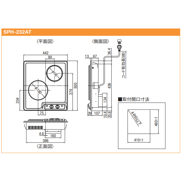 - ■ 三化工業 ■プレートヒーター ビルトイン2口(200Vタイプ)◆ 主な特長 ◆●プレートヒータータイプヒーターが鋳鉄製だから丈夫で熱伝導に大変優れてます。また、保温性抜群で余熱も充分利用出来て、節電&節約になります。優れたローコストなので、一人暮らしのアパートやオフィスのキッチンに最適です。●見やすく使いやすい上面操作タイプ。市場での実績及び信頼性の高いプレートヒーターを採用。コンパクトなのに高火力、そして経済的です。コントロールスイッチを上面に配置したことにより、操作性が向上しました。●取り付けラクラク、コントロールスイッチ一体型ヒーター本体とコントロールスイッチユニットが一体になり、しかもワンタッチ取付方式を採用したことにより施工性が向上しました。●ロータリー式つまみ●ついうっかりも安心、切り忘れ防止機能ヒーター通電後約45分で自動的に通電をOFFにする切り忘れタイマー付き。◆ 主な仕様 ◆■型名:SPH-232AT■色:シルバー■定格:単相200V(50/60Hz)-3500W■大きさ:幅442×奥行き500×高さ146mm■重さ:約6.5kg■右ヒーター直径:145mm消費電力:1500W火力調節:135〜1500W 6段階調節■左ヒーター直径:180mm消費電力:2000W火力調節:175〜2000W 6段階調節■コード:2.0平方mm3芯キャブタイヤコード 長さ0.58m■差し込みプラグ:2極・接地極付 20A・250V■安全機能:切り忘れ防止:通電操作後約45分で自動OFF簡易商品仕様シリーズ名:-ブランド名:三化工業メーカー型番:SPH-232AT代表カラー:シルバーコンロ口数:2本体奥行:500mm本体横幅:442mm本体高さ:146mm