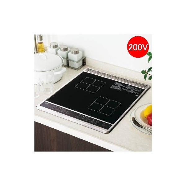 - 商品説明★ 洗練されたデザイントップガラスと操作部をブラックに統一。洗練された重厚感のあるデザインになりました。★ 簡単操作で調理も楽々簡単操作で、幅広い年齢層に本格的な調理をお楽しみいただけます。★ 充実の安全機能IHクッキングヒーターならではの、充実した安全機能と清掃性。スペック* 定格:単相200V-4000W* 大きさ:幅445×奥行き520×高さ98mm* 重さ:約7.0kg* ヒーター…[右]・種類:IHヒーター・直径:170mm・消費電力:2000W・火力調節:150W相当〜2000W 6段階[左]・種類:IHヒーター・直径:170mm・消費電力:2000W・火力調節:150W相当〜2000W 6段階* コード:2.0平方mm 3芯EPゴムキャブタイヤケーブル 長さ0.7m* 差し込みプラグ:2極・接地極付 20A・250V* 安全装置…・切り忘れ防止:通電後、最終キー操作後約45分で通電停止・なべ無し自動停止:通電中になべ無し状態で約1分後にヒーター通電停止・温度過昇防止:空だきなどによりなべ底温度が異常に上がるとヒーター通電停止・高温注意ランプ:トッププレートが高温の間は、ランプ点灯・過熱防止:本体内部の温度が異常に上がると自動的に火力調整または通電停止・電源スイッチ自動停止:電源投入後、未操作の場合約20分経過すると自動的に通電停止・揚げ物なべそり検知:揚げ物調理時、なべ底のそりや変形が大きい場合通電停止(右ヒーター)* 付加機能:[温度調節]150〜200℃ 6段階(右ヒーターのみ)【現在閲覧している商品ページはビルトインIHクッキングヒーター本体単品の販売ページです】