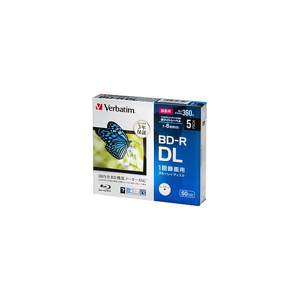 VERBATIMJAPAN 録画用 BD-R DL 1-6倍速 50GB 5枚【5mmスリムケース / インクジェットプリンタ対応】 VBR260RP5D1-B