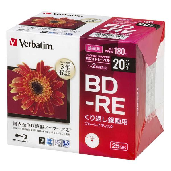 VERBATIMJAPAN 録画用BD-RE(1-2倍速 25GB)20枚パック VBE130NP20D1-B