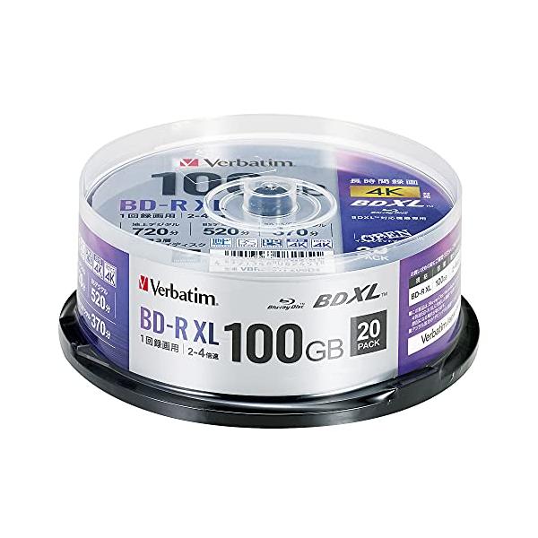 Verbatim バーベイタム 1回録画用 ブルーレイディスク BD-R XL 100GB 20枚 ホワイトプリンタブル 片面3層 2-4倍速
