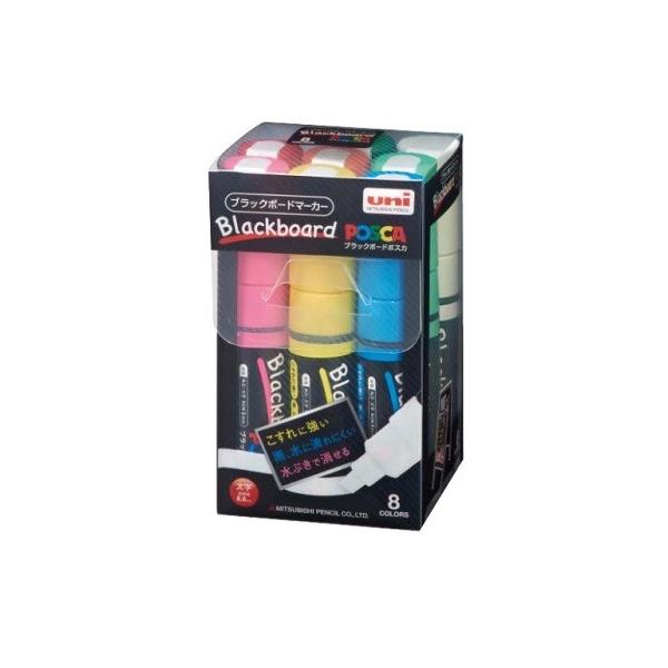 三菱鉛筆 水性サインペン ブラックボードポスカ 太字角芯 8色セット PCE2508K8C