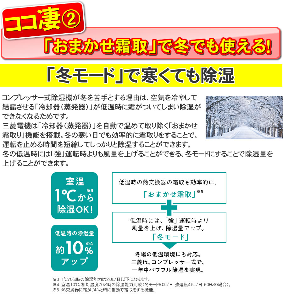 - 取寄せ商品。(お届けまで1週間ほどお時間がかかります。)★お取り寄せ商品★【特長】冬も使えるコンプレッサー式季節や地域を問わず、ハイパワーならではスピード除湿。●大容量ハイパワー●水捨て不要の連続排水可能●コンプレッサー式●冬にも強く年間大活躍●内部クリーンで清潔をキープ●停電復帰機能を搭載●トリプルバリアフィルター搭載●水位目盛付タンク●3mロング電源コード【仕様】●電源単相100V(50Hz/60Hz)●除湿能力(50Hz・60Hz)15.5L/日・18L/日●除湿方式コンプレッサー式●センサー湿度センサー/温度センサー●ルーバー広角オートスイングルーバー/下吹きルーバー●衣類乾燥モード標準/夜干し●除湿モード自動除湿/湿度設定/強運転/弱運転/冬モード/浴室カビガード清潔●お掃除内部クリーン運転●フィルタートリプルバリアフィルター/プラチナ抗菌フィルター●抗菌加工タンクふた/排水ふた●タイマー切・入タイマー(1〜9時間)●除湿面積のめやす(50Hz/60Hz) 一戸建住宅(木造)和室〜19畳(32m2)/〜23畳(38m2) 一戸建住宅(プレハブ)洋室〜29畳(49m2)/〜35畳(57m2) 集合住宅(コンクリート、軽量コンクリート)洋室〜39畳(64m2)/〜45畳(75m2)●消費電力(50Hz/60Hz) 衣類乾燥330/390W 除湿330/390W●1時間あたりの電気代めやす(50Hz/60Hz)10.2円/12.1円●運転音(dB) 除湿 強/弱/冬モード46/38/48 衣類乾燥 標準/夜干し47/38●停電復帰○●洗濯物の量約6kgまで●排水タンク容量約4.7L自動停止●連続排水市販のホース(内径15mm)で可能●冷媒フロンR134a●使用可能温度1℃〜40℃●外形寸法高さ594×幅372×奥行281mm●質量15.2kg●電源コード3.0mMJP180YX