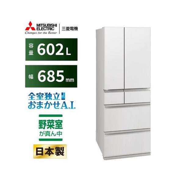 【無料長期保証】三菱電機 冷蔵庫 602L 観音開き 6ドア 幅68.5cm できちゃうV冷凍+ 切れちゃう瞬冷凍A.I. 真ん中野菜室 MR-MZ60N-W ホワイト系