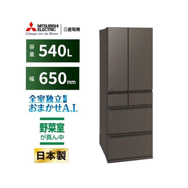 【無料長期保証】三菱電機 冷蔵庫 540L 観音開き 6ドア 幅65cm できちゃうV冷凍+ 切れちゃう瞬冷凍A.I. 真ん中野菜室 MR-MZ54N-H グレー系