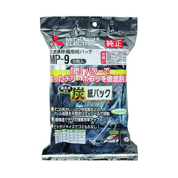 三菱電機 純正 三菱掃除機用紙パック (5枚入) 炭脱臭紙パック (備長炭配合) MP-9