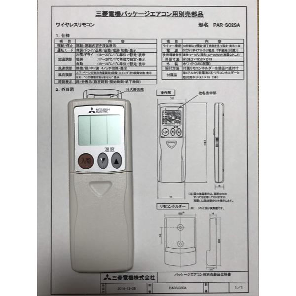 三菱 ルームエアコン 霧ヶ峰用 ワイヤレスリモコン操作部 PAR-SC2SA