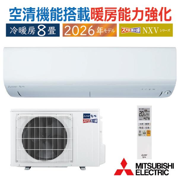 エアコン 8畳用 三菱電機 霧ヶ峰 2026年モデル NXVシリーズ ピュアホワイト 壁掛け 暖房 単相100V MSZ-NXV2526-W