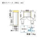 - 【返品種別A】□「返品種別」について詳しくはこちら□2025年01月 発売メーカー保証期間 1年この商品は、お届け時に標準セッティング(設置)作業を無料で行います。(弊社サービスエリアAエリアのみ)配送エリアの確認はこちら※配送のみ(設置をご希望されない)場合は、別途メールにてご連絡ください。B〜Dエリアで、セッティング(設置)をご希望の場合は、対象エリアのセッティング料金を「買い物かご」へ入れて下さい。【冷蔵庫セッティング料金】>> ・Bエリア ・Cエリア ・Dエリア▼今お使いの冷蔵庫のリサイクルをご希望の場合Aエリアの方は、下記のリサイクル料金も『買い物かご』に入れてください。リサイクルを希望される冷蔵庫のメーカーや種類によって料金が異なります。B〜Dエリアの方は、商品を「買い物かご」に入れる際に「リサイクルを希望する」を選択してください。リサイクル・収集運搬料は、現地で現金支払いになります。(リサイクル・収集運搬料の料金一覧はこちらでご確認ください)■今お使いの冷蔵庫をリサイクルをご希望の場合、下記の商品も『買い物かご』に入れてください。[リサイクル料]冷蔵庫・冷凍庫・ワインセラー・保冷庫(170リットル以下)ご希望の方は「こちらのページ」からどうぞ[リサイクル料]冷蔵庫・冷凍庫・ワインセラー・保冷庫(171リットル以上)ご希望の方は「こちらのページ」からどうぞ※離島、山間部及び一部の遠隔地などはご注文をお受けできません。【搬入・設置にあたり】※必要通路幅(階段以外の平面)は、直線通路の場合、最小通路幅が冷蔵庫の横幅+6cm以上必要です。(詳しくは【冷蔵庫 ご購入前のチェックポイント】をご確認ください)◆切れちゃう瞬冷凍A.I.冷凍いらずで使いたい分だけ食品の種類や大きさ、凍り方により、若干の冷凍時間が必要になる場合があります。◆できちゃうV冷凍冷凍した野菜を砕いて使える! ◆ひろびろ氷点下ストッカーD A.I.肉や魚を冷凍しないで、さらに長〜くストック◆しっかり冷凍室冷凍食品もたっぷり入る大容量しっかり冷やして、食品の鮮度を守ります。◆まるごとクリーン清氷清潔な氷が、いつでもたっぷり! 丸洗いできるから清潔でおいしい氷が毎日楽しめます。◆中だけひろびろ大容量自分仕様に自由にカスタマイズ! ・どこでもタマゴケースドアにも棚にも置ける・左右段違い棚鍋尚大きいものが置ける・思うままフリーケース(大)(小)バラつきやすい小物をまとめて収納・思うままストッパードアポケットやフリーケースを、自由に仕切れる■ 仕 様 ■定格内容積:547L各室容量… 冷蔵室:298L [220L うちフレッシュゾーン 26L] 製氷室:21L [5L] 瞬冷凍室:29L [16L] 冷凍室:99L [64L] 野菜室:100L [69L] ※[ ]内の数字は食品収納スペースの目安自動製氷:有外形寸法(約):幅650×奥行709×高さ1833mm必要設置スペース(約):幅660×奥行709×高さ1883mm※設置条件により若干異なることがありますので、10mm程度余裕をとってください。質量(約):118.0kg年間消費電力量(50/60Hz):266kWh/年年間電気代目安:7180円(税込)[MRWZ55MH]三菱生活家電>冷蔵庫・冷凍庫・ワインセラー>冷蔵庫>500〜549L (4〜5人)>観音開き(フレンチドア)・まごころ長期修理保証(保証5年)[加入料:対象商品代金の5%]商品「MR-WZ55M-H」専用加入料(※加入料のみ注文不可)・まごころ長期修理保証(保証10年)[加入料:対象商品代金の8%]商品「MR-WZ55M-H」専用加入料(※加入料のみ注文不可)※対象商品と専用加入料を分けてのご注文は承れません。上記リンク先の専用加入料と一緒にご注文して下さい。※長期修理保証についての詳細・注意事項はこちらのページをご一読下さい。