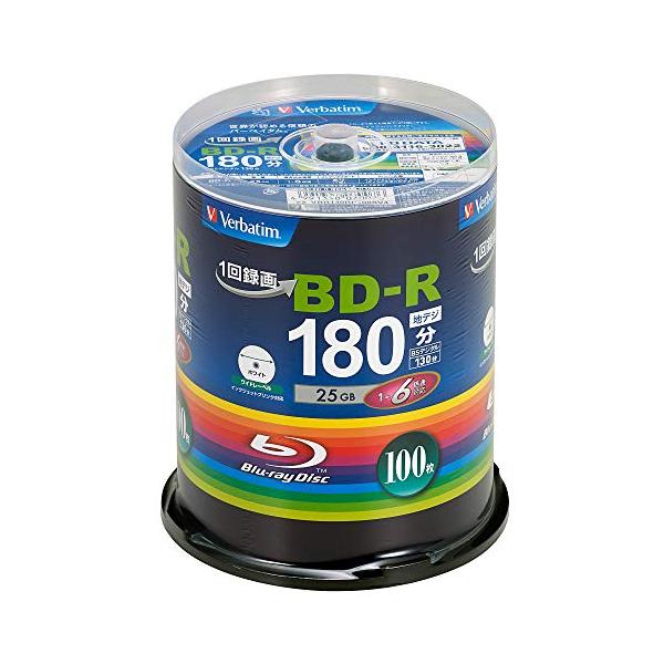 「Verbatim バーベイタム 1回録画用 ブルーレイディスク BD-R 25GB 100枚 ホワイトプリンタブル 片面1層 1-6倍速 VBR」
