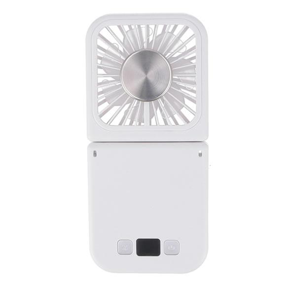 - 不二貿易商品コード : 75697JAN : 4953980756978商品詳細色柄 : ホワイト個口数 : 1梱包サイズ(mm) : 90× 195× 29梱包重量(g) : 224全体サイズ : 幅172×奥行79×高さ29mm幅 From : 172奥行 From79高さ From : 29電池容量 : 3000mAh電圧/電流 : 5V/2A電力 : 6W使用時間 : ・ファンモード:2.5時間-11時間・ファン+冷却モード:1.5時間-3.5時間充電時間 : 3時間風量調節 : 5段階冷却調節 : 2段階ケーブル : タイプC付属商品形態 : 完成品特徴●冷却機能付き!モバイルバッテリーにもなる4WAYハンディファン●そよ風から強風まで、お好みで5段階の風量調節が可能です。●ファンを起動させた状態で雪マークを押すと、ファン中央の冷却プレートが冷え、肌に当てて直接体を冷やすことができます。●付属のストラップをつけると首掛け仕様に、2つに折り曲げると卓上ファンに、さらに広げるとスマホスタンドになど、使い方が広がります。●最大容量3000mAhを備え、充電残量はLEDディスプレイで確認できます。●折りたたむと8×9cmのコンパクトサイズになり、持ち歩きにも便利です。付属のタイプCケーブルで充電ができます。連続使用時間は、ファンモードで約2.7〜11時間、ファン+冷却モードだと約1.5〜3.5時間です。
