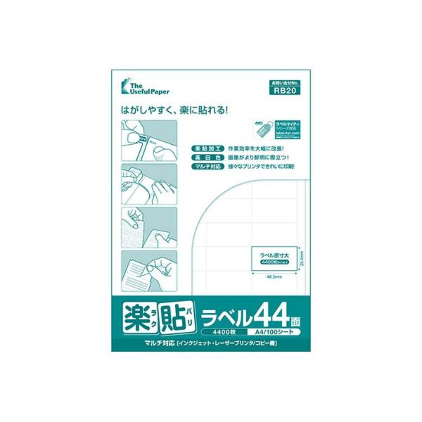 NAKAGAWA 中川製作所 楽貼 ラクバリ ラベル用紙 A4 44面(48.3×25.4mm) 100枚入り RB20 UPRL44A-100
