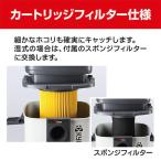 カートリッジフィルタ仕様で、細かなホコリも確実にキャッチでき、付属のスポンジフィルタに交換すれば湿式として使用できます。吸引した水はドレン口から簡単に排出できます。市販ポリ袋の取付が可能です。
