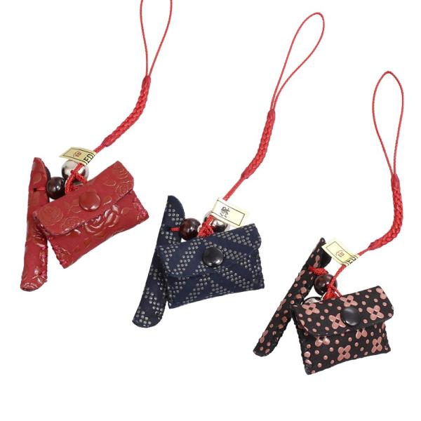日本製 印伝 INDENYA 印傳屋 ストラップ キーホルダー チャーム ポーチ型 根付供紐 色柄おまかせ 可愛い オシャレ 鹿革 漆 プレゼント お年賀 日本製 アイテム