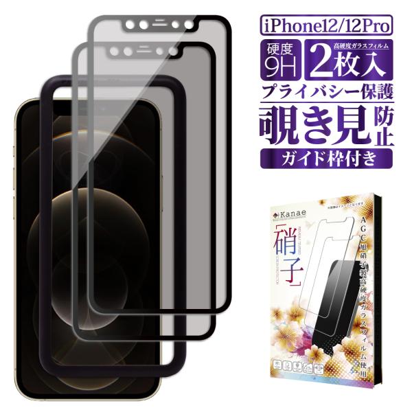 iPhone 12 Pro ガラスフィルム 覗き見防止 保護フィルム iphone12pro 液晶保護フィルム 黒縁 叶kanae カナエ 強化ガラス