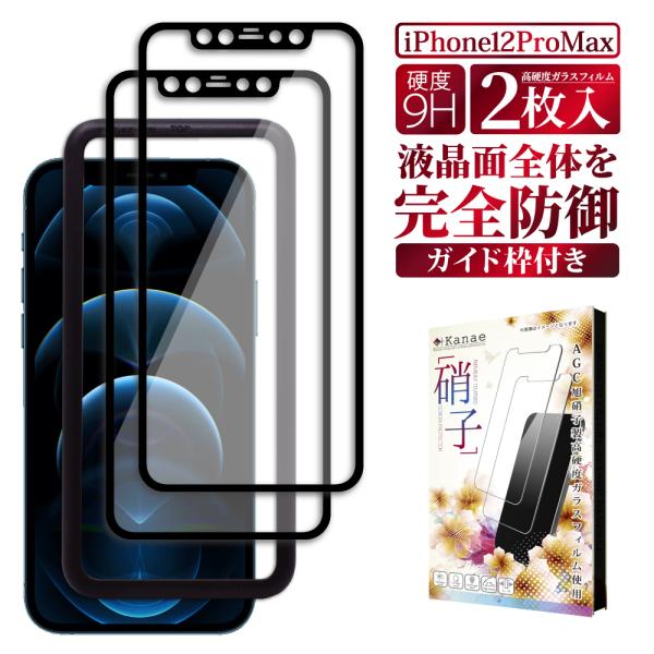 iPhone 12 Pro Max ガラスフィルム 保護フィルム 全面保護 iphone12promax 液晶保護フィルム フィルム 黒縁 叶kanae カナエ 強化ガラス