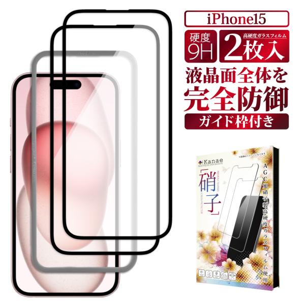 iPhone15 ガラスフィルム 保護フィルム 全面保護 アイフォン15 液晶保護フィルム フィルム 黒縁 叶kanae カナエ 強化ガラス