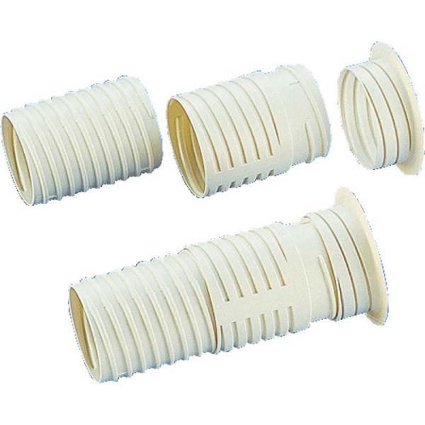 - 【特長】●壁貫通部に挿入するスリーブです。●スリーブの長さ調整が簡単にできるねじ込み式です。●壁厚約100mm〜180mmまで長さが可変できるアイデア設計のため壁厚に合わせ貫通スリーブをカットする必要がありません。(※構造上105mm〜127mmの間は長さ調整ができません。)●ウォールキャップと貫通スリーブのねじ部(嵌合部)に余裕を持たせているため、貫通穴の傾斜(約5°)にフィットします。●施工後一体構造となるためコーキング仕上げも簡単におこなえ、雨水や虫が入りません。建物の色調とマッチするアイボリー仕上げです。●穴ぶた(別売)は3サイズ共通です。【仕様】●メーカー:因幡電工●型番:NFP65●商品名:NEW貫通スリーブ●寸法:A(外径)-66.5mm/B(内径)-55.5mm/C-90mm●コアドリル径:70●材質:PE●色調:アイボリー