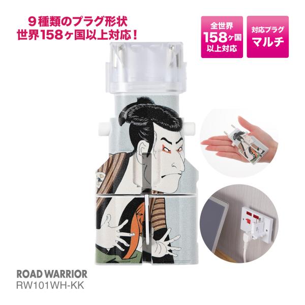 海外赴任、留学、旅行用 マルチ電源プラグ変換アダプター お土産にも RW101WH-KK 浮世絵 歌舞伎