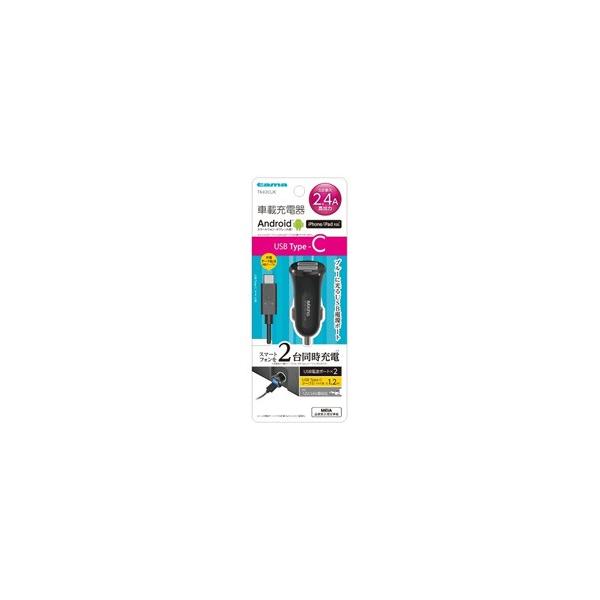 多摩電子工業 タブレット/スマートフォン対応[USB-C/USB給電] DC - USB充電器 2.4A +USB-C⇔USB-Aケーブル 1.2m (2ポート・ブラック) TK43CUK 【864】