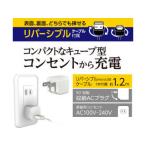 多摩電子工業 Wリバーシブルケーブル付コンセントチャージャー 1A ホワイト