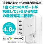 *最大4台の機器を同時に充電可能な4ポートタイプのコンセント充電器(合計最大出力4.8A)過電流・過電圧保護機能を搭載した安全設計。