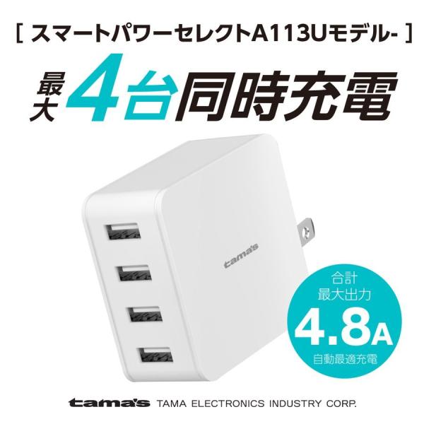 多摩電子工業 TA113UW コンセントチャージャー 4.8A USB−A×4ポート