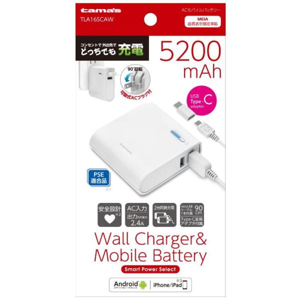 - 在庫状況:お取り寄せ/2019年06月 発売/◆AC充電器一体型のリチウムチャージャー◆Type-C変換アダプタ付属でmicroUSB/Type-Cのスマートフォンに両対応/[TLA16SCAW]