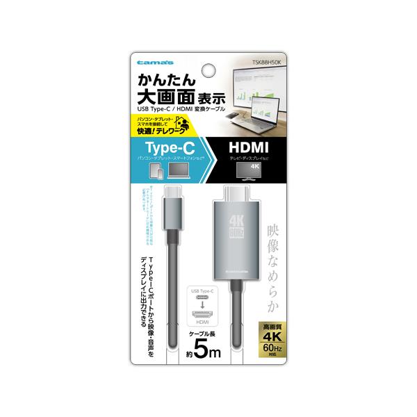 多摩電子 TypeC/HDMI変換ケーブル 5.0m TSK88H50K