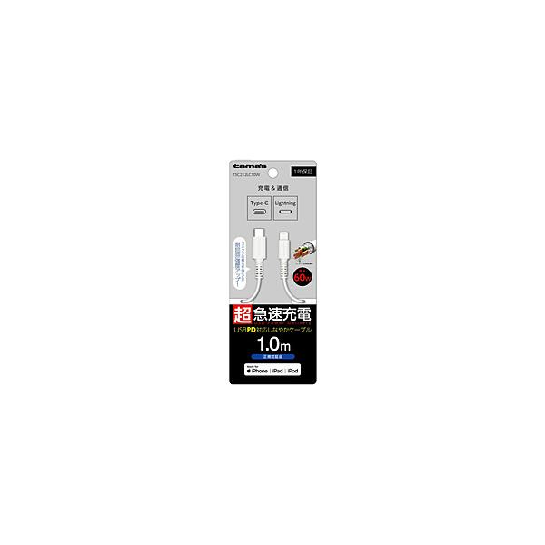多摩電子工業 USB-C to Lightningロングブッシュケーブル 1.0m ホワイト TSC212LC10W