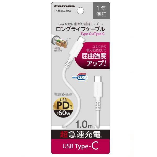 多摩電子工業株式会社 C to C ロングライフケーブル 1.0m ホワイト TH265CC10W