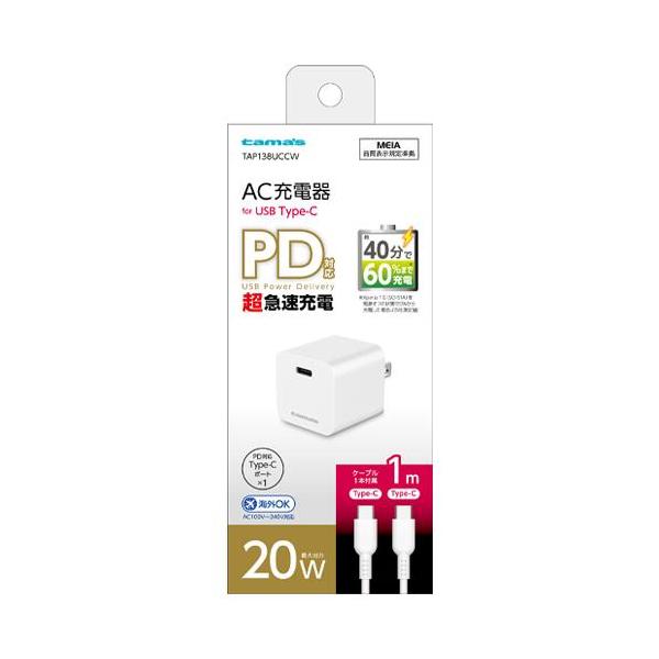 多摩電子工業 TAP138UCC-W ホワイト PD 20W コンセント チャージャー C to C