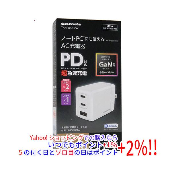 - 【商品名:】多摩電子工業 PD 65W コンセントチャージャーC×2+A TAP148UC2W / 【商品状態:】新品 / 【検索用キーワード:】≪充電池 充電器≫ TAP148UC2W [ホワイト] / 【型番:】TAP148UC2W [ホワイト] / 【商品説明:】●単体使用時最大65WのUSBPD対応 USB-Cポートと単体使用時最大18WのUSB-Aポートを搭載したAC充電器。/ ●過電流・過電圧保護機能を搭載した安全設計。/ ●90°回転式ACプラグ採用で収納・持ち運びに便利。/ ●海外でも使用できるAC100V〜240V対応。/ ※国や地域によって市販の変換プラグが必要になる場合があります。 /