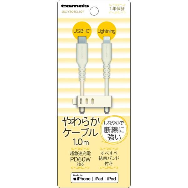 多摩電子 シリコンケーブル USB-C to Lightning 1.0m(イエロー) tama's[Joshinオリジナル] JSC-Y304CL10Y 返品種別A