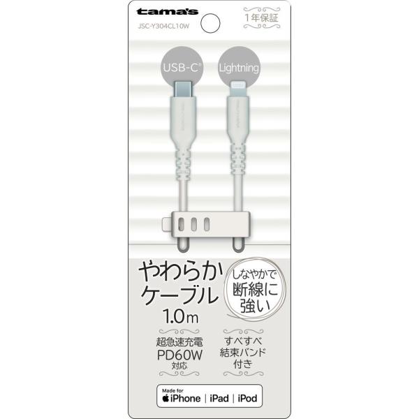 多摩電子 シリコンケーブル USB-C to Lightning 1.0m(ホワイト) tama's[Joshinオリジナル] JSC-Y304CL10W 返品種別A