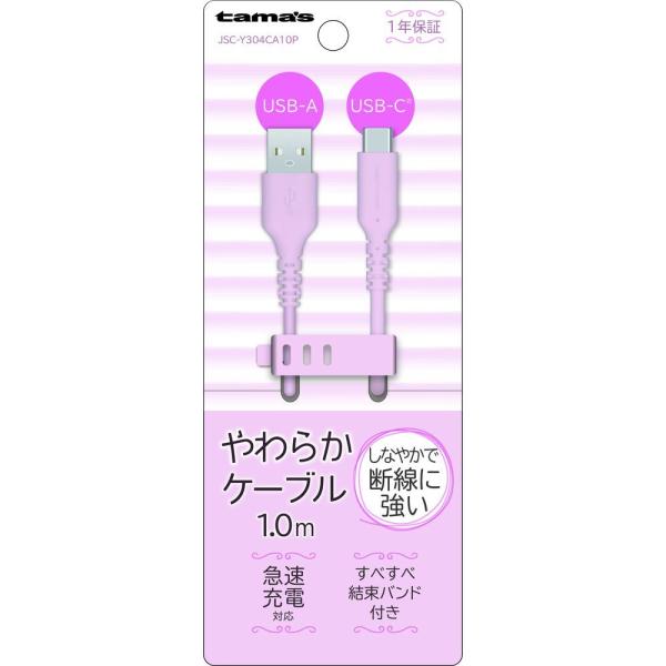 多摩電子 シリコンケーブル USB-A to USB-C 1.0m(ピンク) tama's[Joshinオリジナル] JSC-Y304CA10P 返品種別A