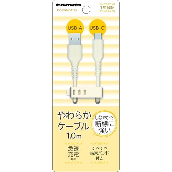 多摩電子 シリコンケーブル USB-A to USB-C 1.0m(イエロー) tama's[Joshinオリジナル] JSC-Y304CA10Y 返品種別A